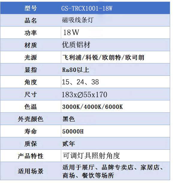 型號(hào):GS-TRCX1001-18W1、優(yōu)質(zhì)鋁型材燈體,表面陽極氧化處理或根據(jù)環(huán)境顏色靜電噴涂處理,耐沖擊、高強(qiáng)度鋼化玻璃面罩;