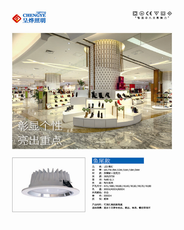 LED射燈:常用于商業(yè)空間中的重點照明,用來照射需要重點突出的物體,比如商品、裝飾品等,可以打出干凈、清晰的光斑,重點突出需要表達(dá)的物體,以增強效果。