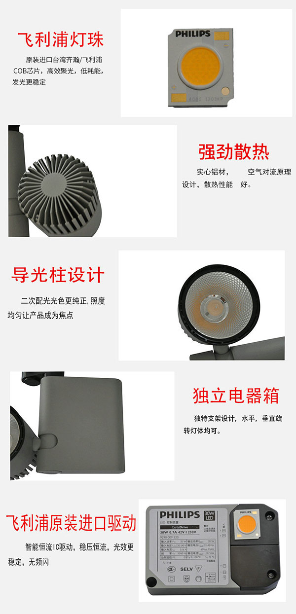 呈燁照明COB軌道燈系列產(chǎn)品采用進(jìn)口飛利浦光源、驅(qū)動(dòng),保證還原、展現(xiàn)出產(chǎn)品的真實(shí)色彩;驅(qū)動(dòng)電源確保使用50000小時(shí),性能穩(wěn)定,稱的上是軌道燈中的優(yōu)等配置。