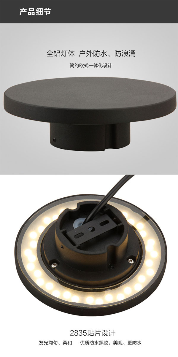 3、庭院圓形LED壁燈光效好,顯色性強,逼真程度高;