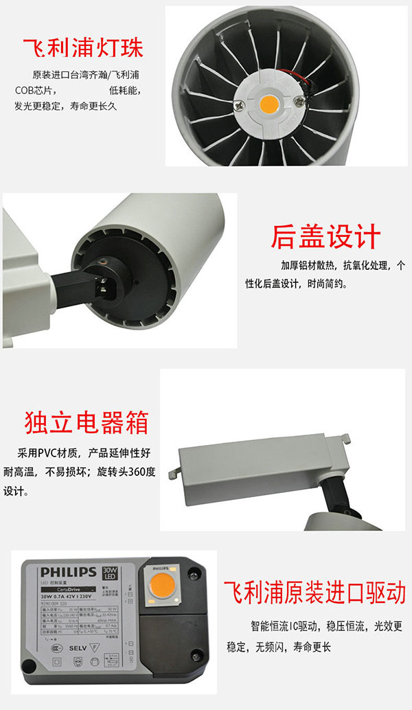 呈燁照明COB軌道燈系列產(chǎn)品采用進口飛利浦光源、驅(qū)動,保證還原、展現(xiàn)出產(chǎn)品的真實色彩;驅(qū)動電源確保使用50000小時,性能穩(wěn)定,稱的上是軌道燈中的優(yōu)等配置。
