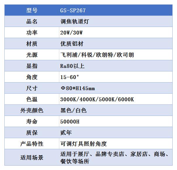 展廳調焦射燈GS-SP267產品特點: