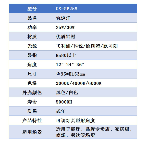 3、LED軌道燈GS-SP258搭載原裝進(jìn)口光源、驅(qū)動(dòng)。LED燈具顯色性強(qiáng),逼真程度高;