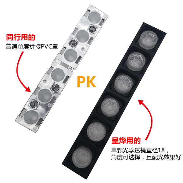 4、透鏡采用進(jìn)口PMMA材料制造,結(jié)合光學(xué)折射原理設(shè)計(jì)而成,透光率高,可定制各種規(guī)格配光角度。