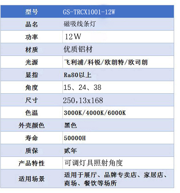 型號(hào):GS-TRCX1001-12W1、優(yōu)質(zhì)鋁型材燈體,表面陽極氧化處理或根據(jù)環(huán)境顏色靜電噴涂處理,耐沖擊、高強(qiáng)度鋼化玻璃面罩;
