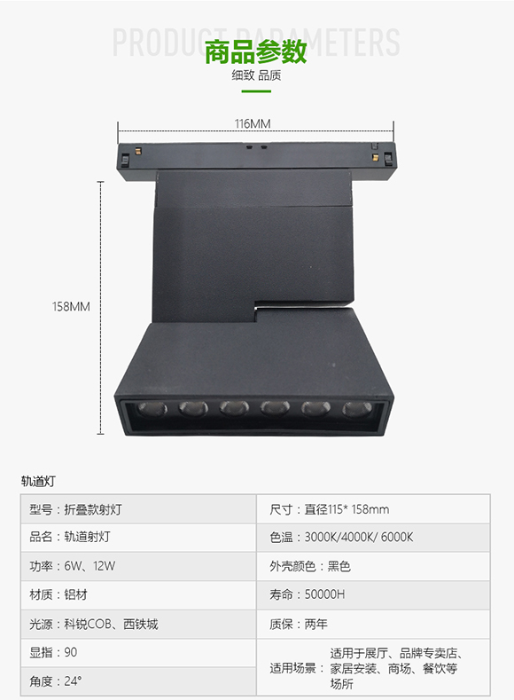 型號:折疊款射燈1、優(yōu)質(zhì)鋁型材燈體,表面陽極氧化處理或根據(jù)環(huán)境顏色靜電噴涂處理,耐沖擊、高強度鋼化玻璃面罩;