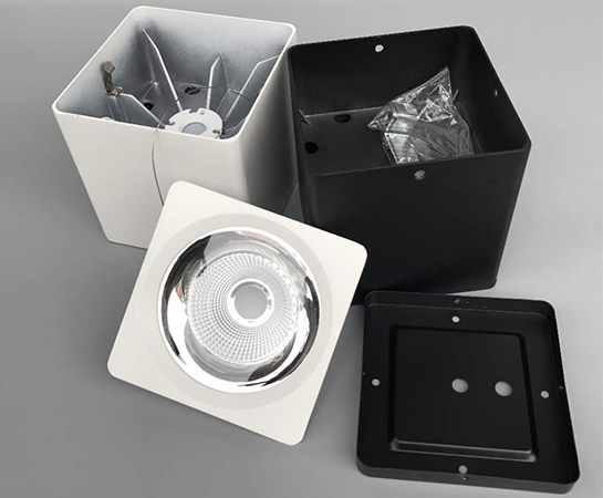 3、可調(diào)焦射燈GS-方形明裝筒燈搭載原裝進口光源、驅(qū)動。LED燈具顯色性強;
