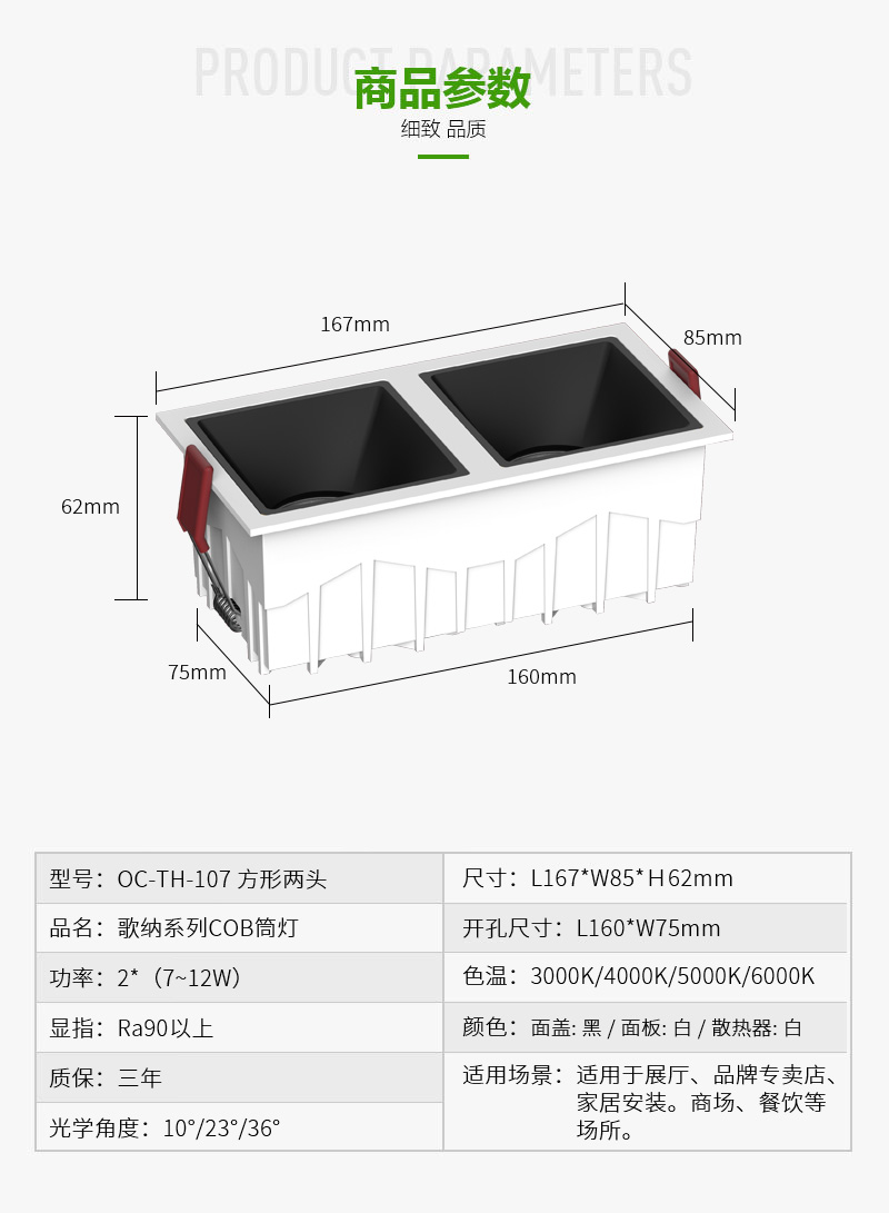型號:OC-TH-107 方形兩頭
