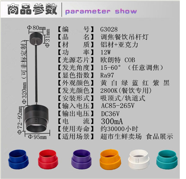 3、餐飲軌道燈GS-SP248采用美國(guó)歐朗特光源,顯指97,高顯色性還原更豐富的色彩